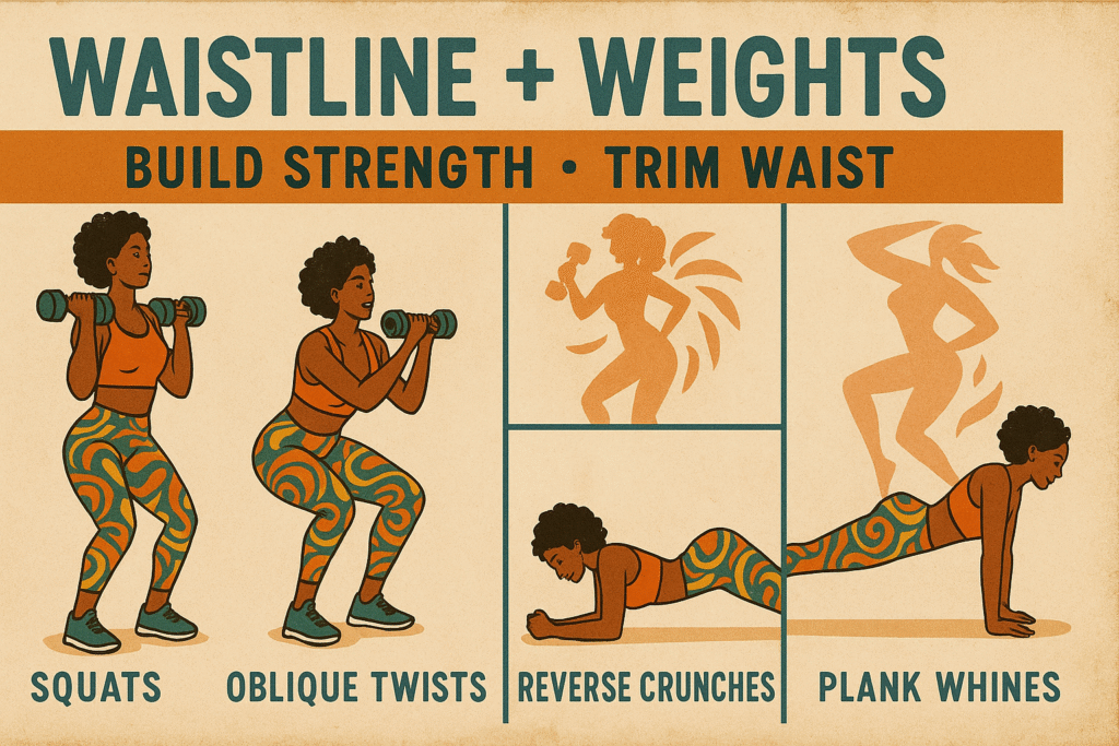 • Keep cardio fun and waist-focused (dance, Soca, Afrobeat)
